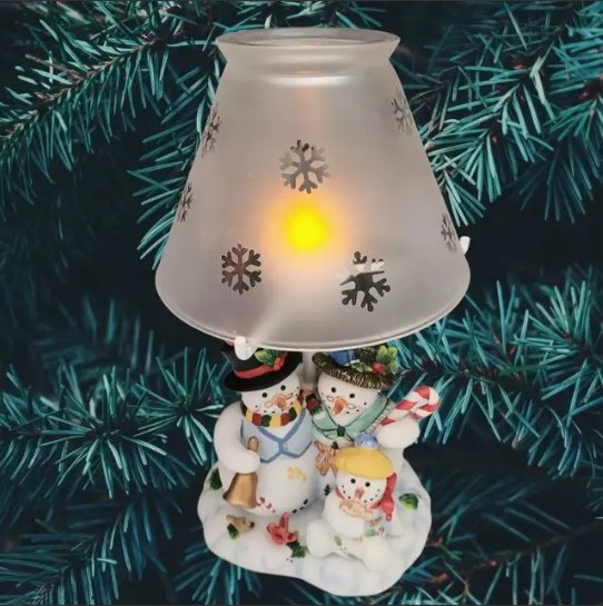 Partylite Snowman Snowbell Family Christmas Glass & Ceramic Tealight Lamp
